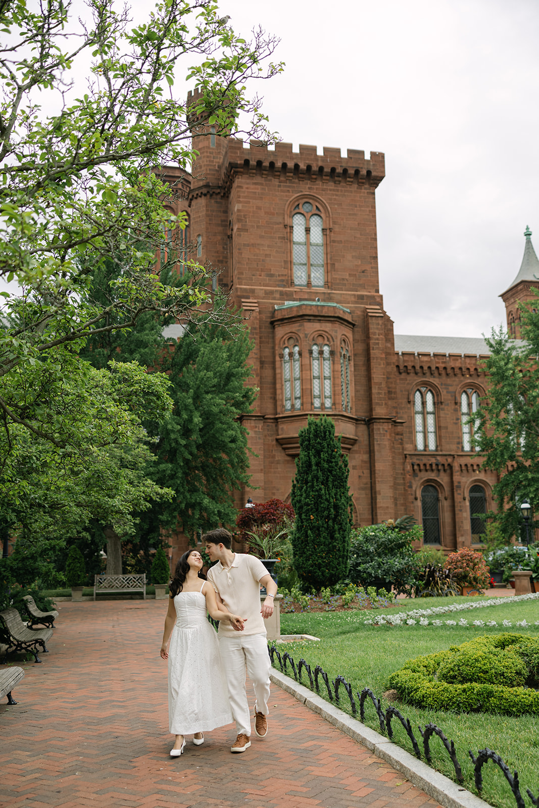 Tucked behind the Smithsonian Castle, this garden feels like stepping into a storybook! Engagement photos at Enid A. Haupt Garden capture lush greenery and romantic pathways that look straight out of Europe.