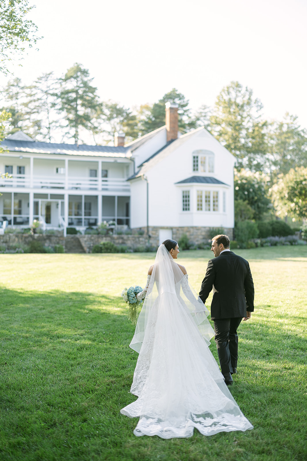 - Spaces: Ceremony under grand trees, reception in a beautifully appointed tent, mansion lawn for cocktail hour